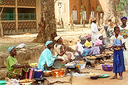 La paix règne ici, troublée seulement par les “pies métalliques“ (sorte d’oiseaux noirs, très criards, à longue queue et au plumage à reflets métalliques), et le soir, par le groupe électrogène. Le matin, la petite cloche tinte très tôt pour rassembler les fidèles pour les laudes et la messe. Je consacre une partie de la matinée pour planter des eucalyptus avec le Père Martinez ; je visite ensuite le marché (c’est presqu’obligatoire en Afrique de l’Ouest lorsque vous arrivez quelque part). Puis, ce que j’apprécie toujours beaucoup, contacts avec des paroissiens, avec des malades. Dans l’après-midi et la soirée, le Père Michel m’invite à voir ses archives : de nombreux documents passionnants sur l‘histoire, la géographie, la pluviométrie. Je puis ainsi mieux comprendre diverses situations. J’ai aussi l’occasion de parler 5 minutes à la radio qui fonctionne le soir. Là, j’ai pu donner la raison de ma venue à Bamako et j’en ai profité pour remercier tout le monde pour leur accueil remarquable et si charmant.