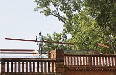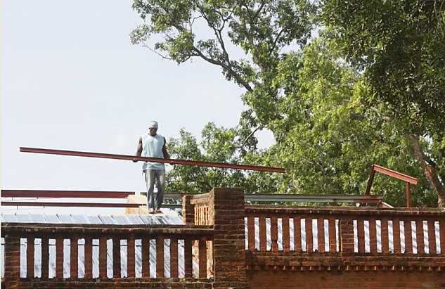 La Mission de Konatebougou ressemble à un gros bloc beige, surmonté d’une terrasse. La maison est agréablement entourée d’arbres magnifiques peuplés d’oiseaux chanteurs.