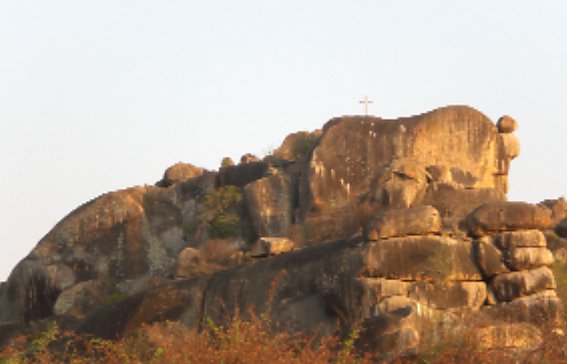 A l’arrivée, de loin, on peut voir le gros rocher avec la croix. Au pied de celle-ci, la place est préparée pour la célébration de la messe. Face au lac Victoria, on peut comprendre l’amour fidèle de Dieu.