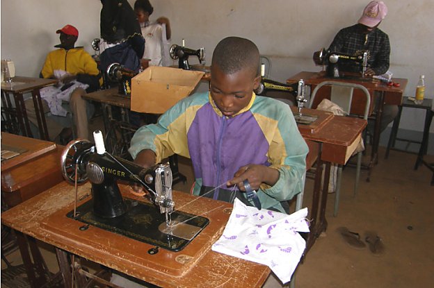 A la plupart des jeunes contactés, nous proposons de venir dans notre centre « pour voir », pour se laver correctement et laver leurs vêtements, et surtout pour commencer à y apprendre un métier dans nos ateliers de jour : couture, mécanique-moto, soudure, ou peinture sur tissu et sérigraphie. Ce temps d’activité, sous le regard des m-niteurs et des animateurs, permet de mieux se connaître, de détecter une évolution dans le comportement, et de proposer, en temps voulu, un retour en famille. C’est seulement quand ce retour est effectué que nous pouvons envisager la scolarisation. Un enfant dans la rue ne peut être fidèle à des horaires de classe.