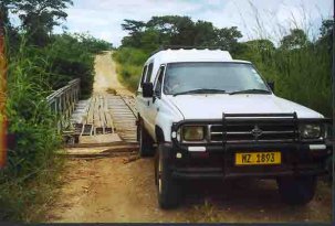 Passage d'un pont sur une piste au nord MalawiC'est lui qui m'a formé !