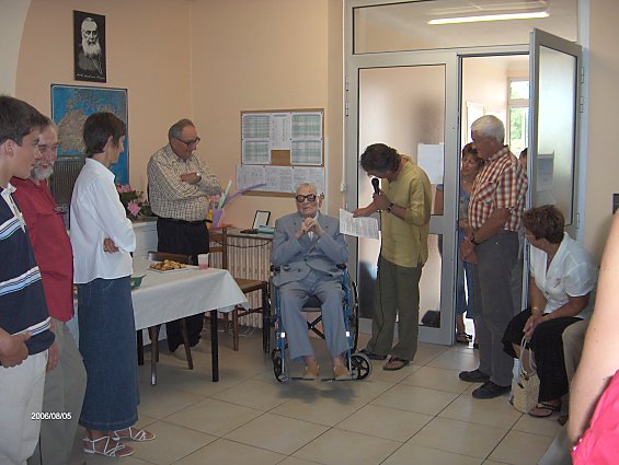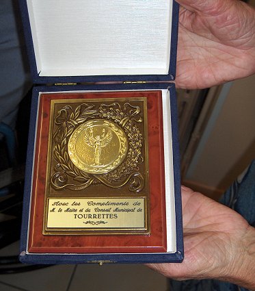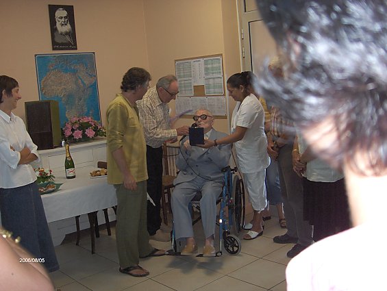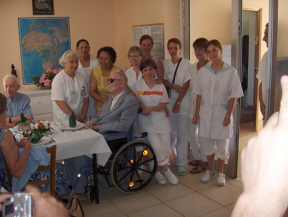 A 16 h (heure plus facile pour le père joseph), reception officielle dans les mêmes salles. Deux représentants du maire de Tourrette ont remis au père la médaille de la ville de Tourrette - présentation des souhaits du personnel de la maison - chant de circonstance de mr Pierre Morel petit neveu - remise d'une deuxième bénédiction du Pape demandée par la famille. Cadeau d'un lecteur cd et cassette pour écouter la musique de la part de la communauté -