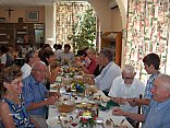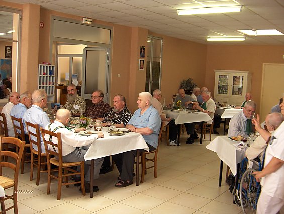 Reprise ensemble d'anciens chants scout que le père connait encore par coeur - et champagne et petits fours. A cette réception ont participé en plus de la mairie, notre kiné, et notre médecin - Le clergé s'est excusé - a noter la participation du personnel au grand complet qui a assuré la décoration, la cuisine et le service pratiquement de 6 h du matin à 6 h du soir.