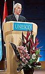 Le prix Sharjah pour la culture arabe, comme lindique le livret offert au moment de sa remise, a été créé en 1998 par le gouvernement de lÉmirat, pour commémorer la désignation de la ville de Sharjah en tant que « Capitale culturelle de la région arabe » sous le patronage de lUnesco. Il récompense les efforts dun ressortissant dun pays arabe et dun ressortissant de tout autre pays qui auront contribué, par leurs uvres, au développement et à la propagation de la culture arabe dans le monde.LAmbassadeur Délégué permanent des Émirats Arabes Unis auprès de lUnesco, Mr Hussein Ghubash, écrit : « Il a été créé conformément à lesprit de la mission humaniste de notre organisation, de promouvoir la compréhension entre les peuples, par une meilleure connaissance mutuelle et par léchange entre les différentes cultures. » Ce prix a été décerné pour la première fois en 2001. Et depuis 2003, il est décerné tous les ans. Le lauréat, ressortissant dun pays arabe, qui, cette année, a reçu le prix avec notre confrère, est le Professeur Taher Ouettar, journaliste et écrivain algérien, dont les romans, pièce de théâtre et nouvelles, écrits en arabe, sont traduits en plusieurs langues (nouvelles : Fumée de mon cur, Les coups, Les martyrs reviennent cette semaine, Le pêcheur et le palais ; théâtre : Le fugitif ; romans : Las, Le séisme, Noces de mulet, Expérience amoureuse, Aimer et mourir à lère Harrachite, La bougie et les cavernes, Le saint Tahar regagne son sanctuaire)