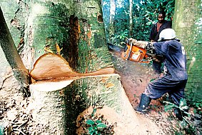 La seconde forêt tropicale de la planète, située dans le Bassin du Congo, est particulièrement touchée par cette destruction à grande échelle. Les sociétés étrangères, qui pratiquent une exploitation forestière sélective et anarchique, participent activement à ce pillage. On estime que la moitié du bois abattu au Cameroun échappe à la règlementation. Cette exploitation illégale prive l’Afrique centrale de revenus vitaux. Par contre, les compagnies étrangères tirent de solides bénéfices d’une activité qui ne répond pas aux exigences du développement durable.