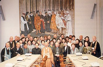 Réunion avec des personnes d'autres religions dans une salle du Conseil Pontifical pour le Dialogue Interreligieux. (Photo prêtée par le C.P.D.I.)