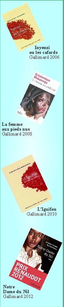 Scholastique Mukasonga, Renaudot 2012Elle ne figurait pas dans la sélection, mais elle reçoit le prix Renaudot, le 7 novembre 2012, pour son premier roman Notre-Dame du Nil, publié chez Gallimard. Scholastique Mukasonga, Rwandaise et romancière d’expression française, figurait dans la sélection de printemps pour ce prix. D’abord écartée, en novembre, elle obtient 6 voix au dixième tour de scrutin, et devient le cinquième auteur africain lauréat de ce prix convoité. Âgée de 56 ans, elle est une survivante du génocide rwandais en 1994 où ont péri sa mère et 37 membres de sa famille. Son ouvrage a également reçu le Prix Ahmadou Kourouma du nom du grand romancier ivoirien qui récompense un ouvrage, essai ou fiction, consacré à l’Afrique noire.